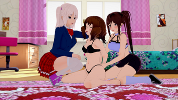 Choosing to lie to Azami or not in the last chapter will totally influence this chapter, depending on your choice, Aiko or Azami will finally succumb to their new mistress, although don't worry, the MC will also fall in front of whoever she decides to fall.